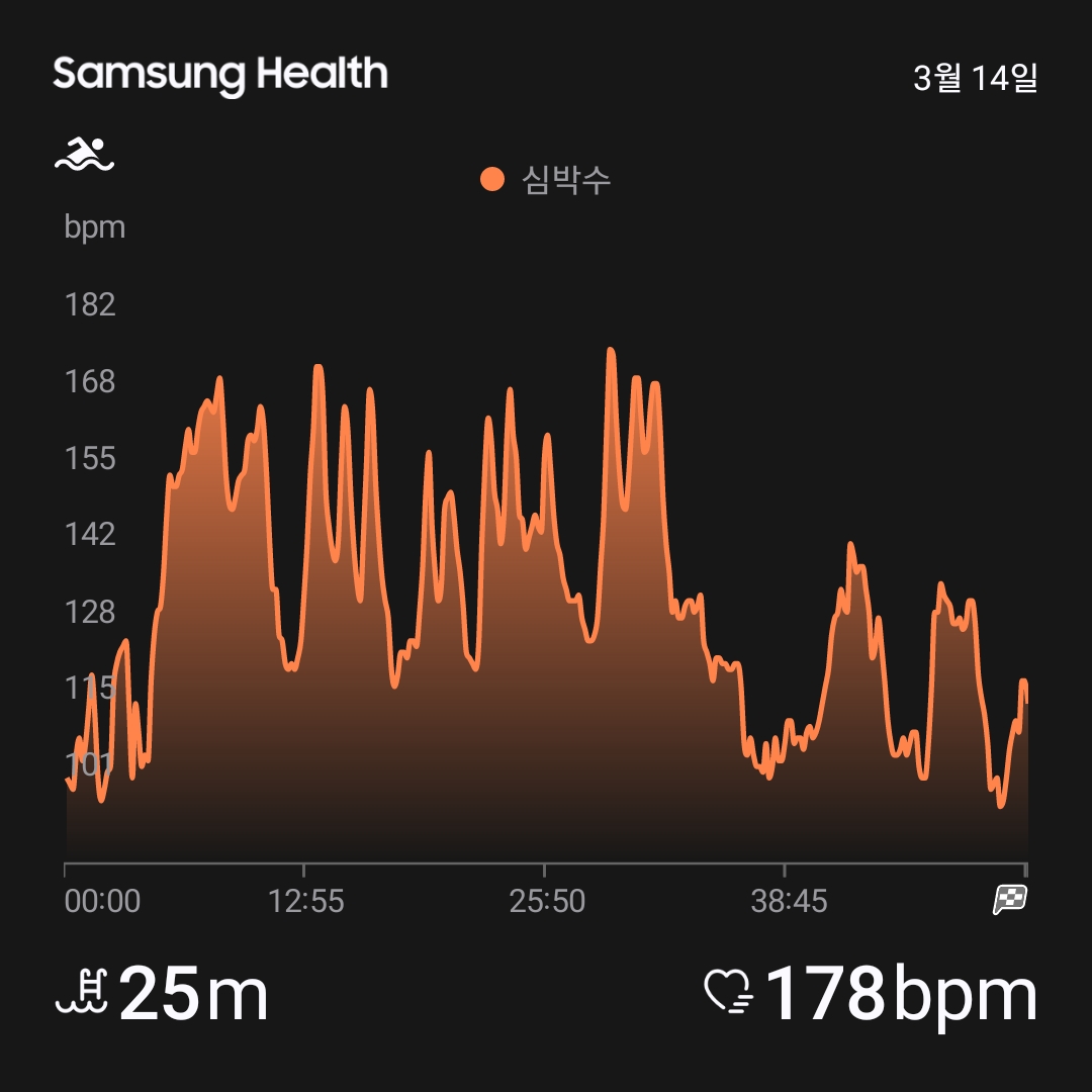| [수영일지] 2025년 3월 12일 - 평균 심박수 160bpm 터질 뻔한 날 (4) | 2025.03.15 |