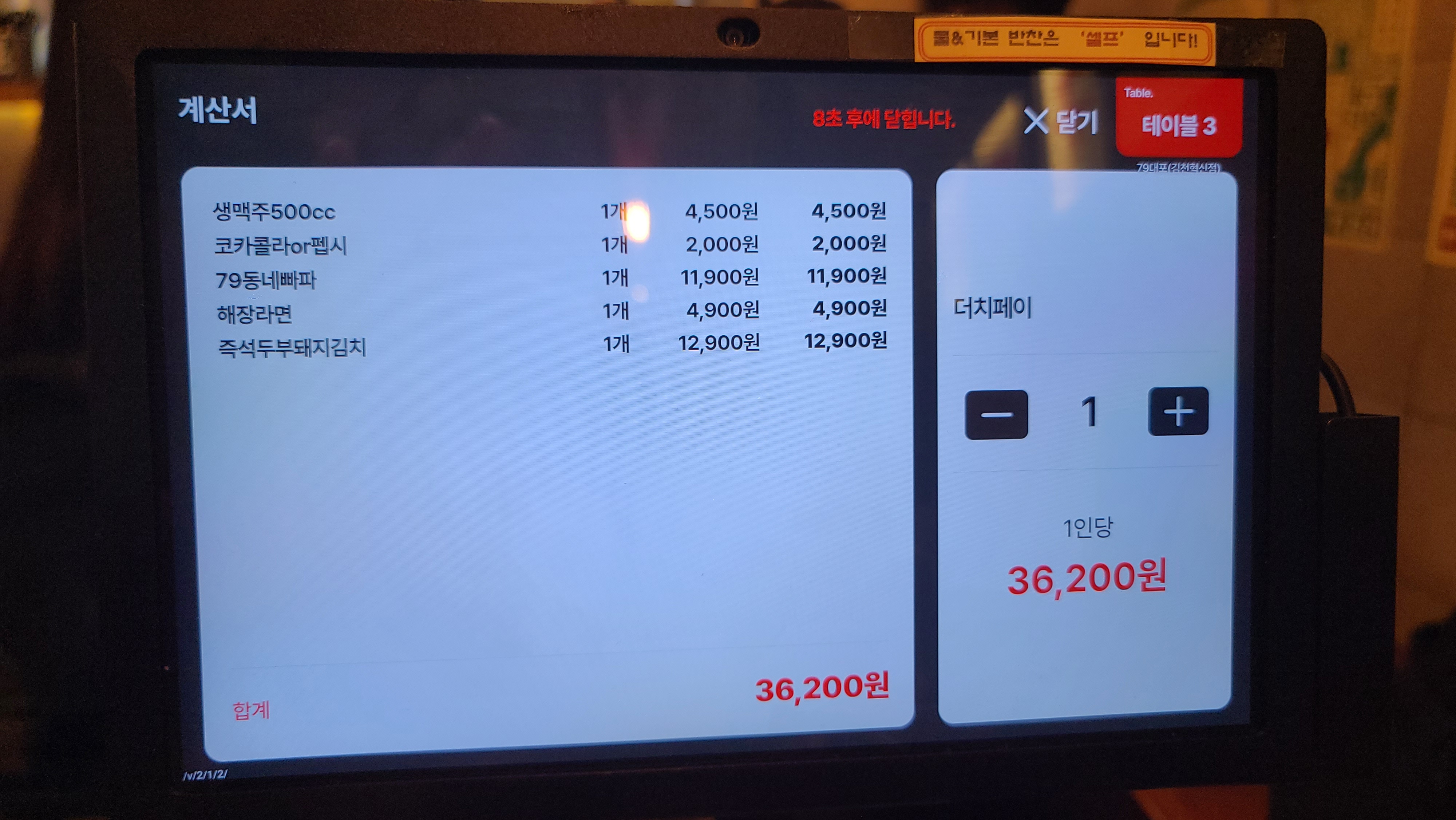 🍽️ 주문한 메뉴 - 79동네빠삭파전, 즉석두부돼지김치, 해장라면, 생맥주