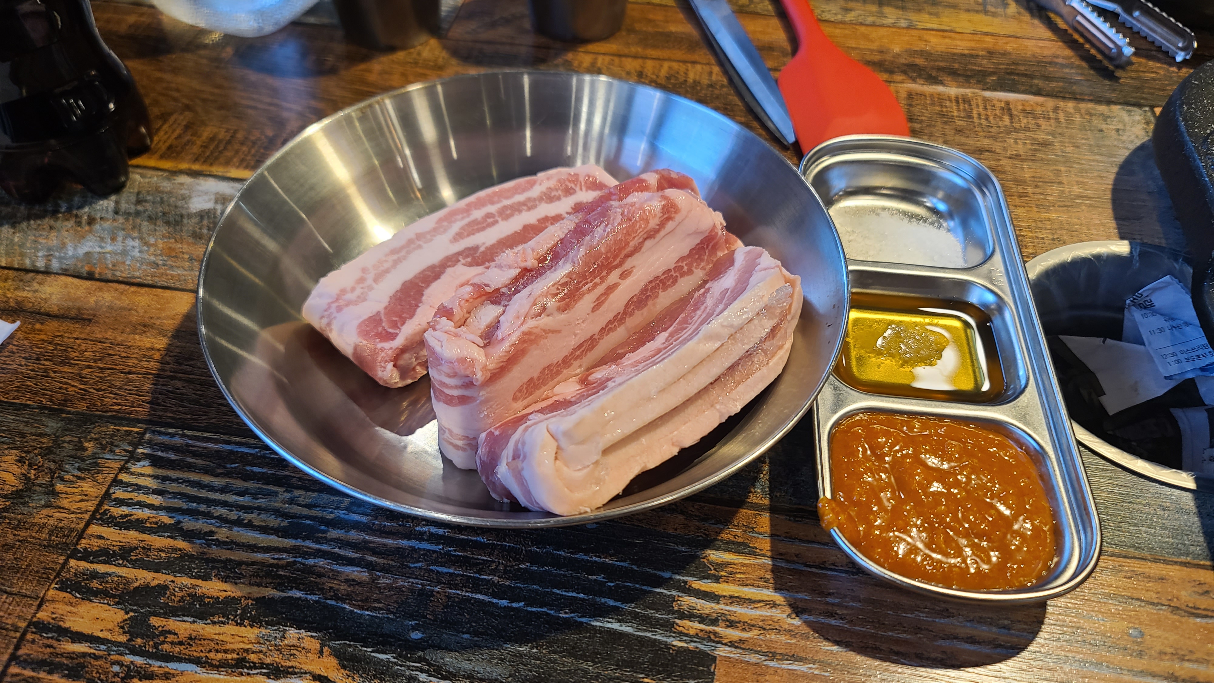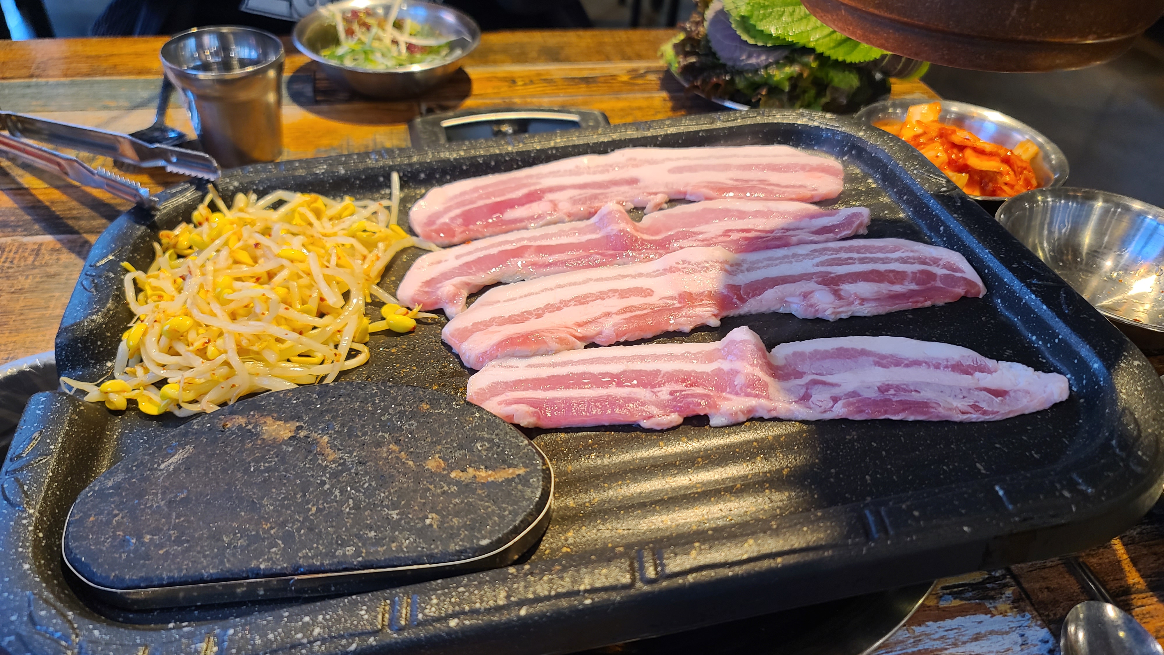 이후 일반 삼겹살과 오겹살, 양념갈비, 우삼겹 등도 시도해 보았지만 가장 인상 깊었던 것은 단연 얇은 삼겹살이었다.