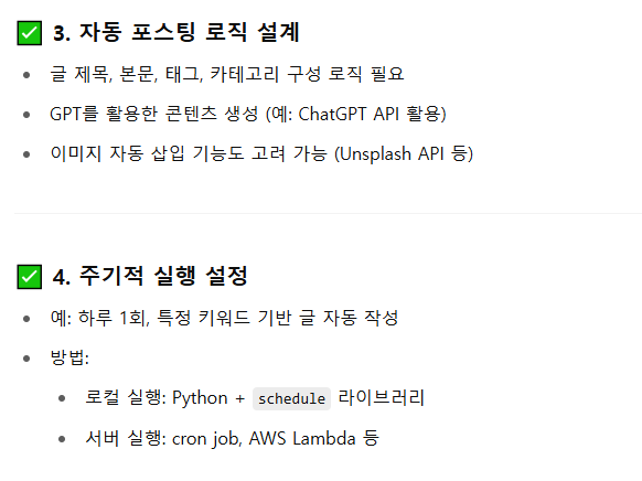 자동 포스팅 로직 설계와 주기적 실행 설정을 하라고 한다.