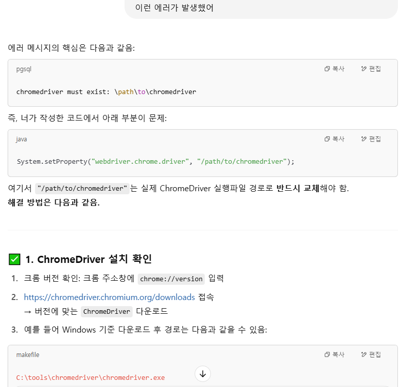 셀레니움 공식 문서를 보며 먼저 공부를 하는 게 맞겠지만 ChatGPT를 이용해 샘플 소스를 얻은 다음 필요한 부분만 공부하는 방식으로 진행하려고 한다.