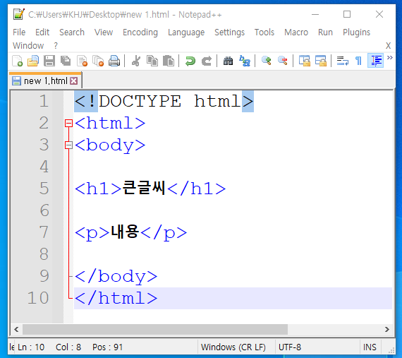 위와같은 코드를 작성해서 확장자를 html으로 저장해보자