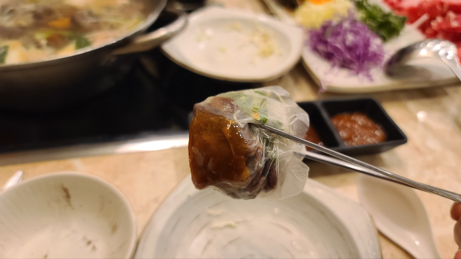 역시 월남쌈은 맛도리다. 잘 우러난 야채 육수에 소고기를 하나씩 담가서 온갖 야채를 넣고 쌈을 열심히 싸먹었다. 제대로 우러난 육수에 쌀국수를 먹고 남은 육수에 또 호박죽을 해먹는 시스템인데 이 마지막에 먹는 호박죽이 진짜 맛도리다.
