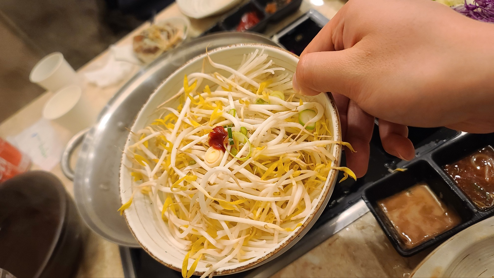 첫인상은 직원분들이 아주 바빠 보였다. 특별하지 않은 딱 샤브샤브 기본 구성으로 찬이 나온다.