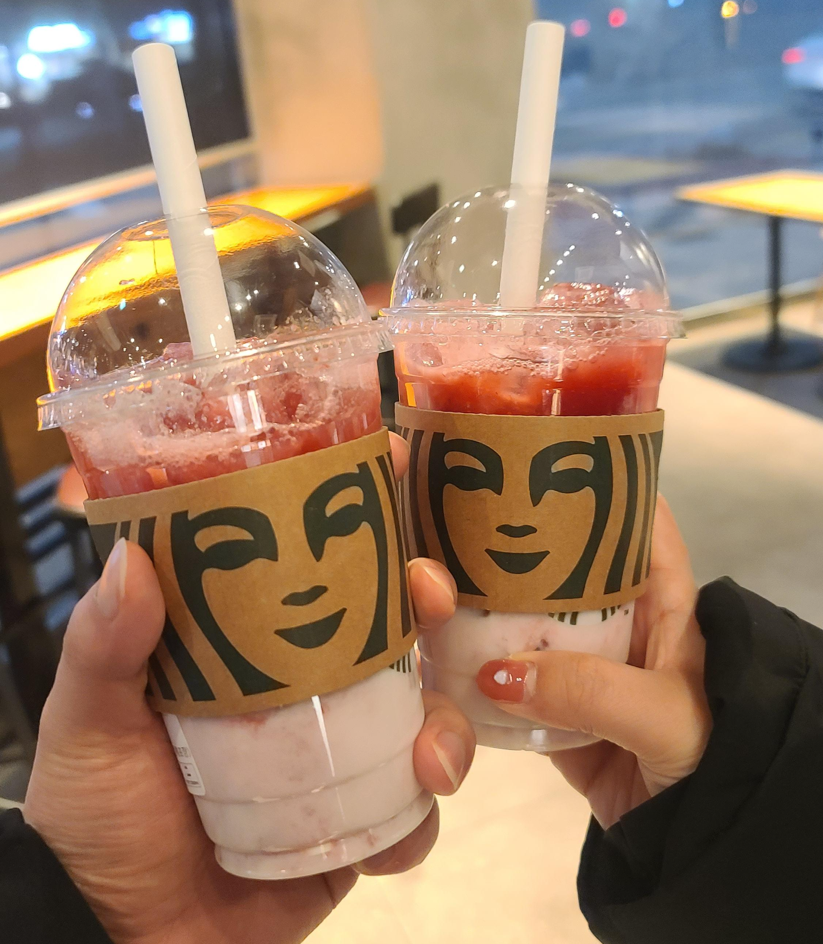 딸기와 우유의 조합은 아주 나이스 한 걸 누구나 알 것이다. 요 스타벅스 딸기라떼는 딸기 요플레에 우유를 섞은 느낌이다. 가격에 맞는 다른 브랜드보다 고급진 맛. 과육은 거의 안 보여 씹는 맛이 없다. 시럽 느낌이 강하다.