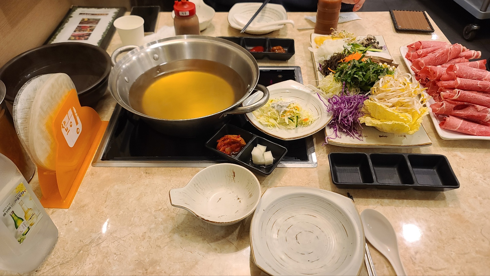 🏠 샤브향 울산달동점 리뷰 위치 : 울산 남구 번영로124번길 25방문일 : 2025년 2월 22일 📍 주문한 메뉴 & 평가 🍽️ 주문한 메뉴 - 쇠고기샤브 2인, 쇠고기 추가 2인분 점심을 늦게 먹어서 배가 안 고파서 놀다가 느지막이 샤브가 먹고 싶어 늦게까지 하는 샤브샤브 집을 찾아보다가 방문한 달동 샤브향. 첫인상은 직원분들이 아주 바빠 보였다. 특별하지 않은 딱 샤브샤브 기본 구성으로 찬이 나온다. 가위에 이전에 월남쌈을 자르다가 붙어서 말라비틀어진 게 있고 국자는 설거지가 덜 되어서 얼룩덜룩해서 교체를 요청했다. 다시 받은 가위는 괜찮고 국자는 또 얼룩덜룩했지만 그냥 사용하였다. 역시 월남쌈은 맛도리다. 잘 우러난 야채 육수에 소고기를 하나씩 담가서 온갖 야채..